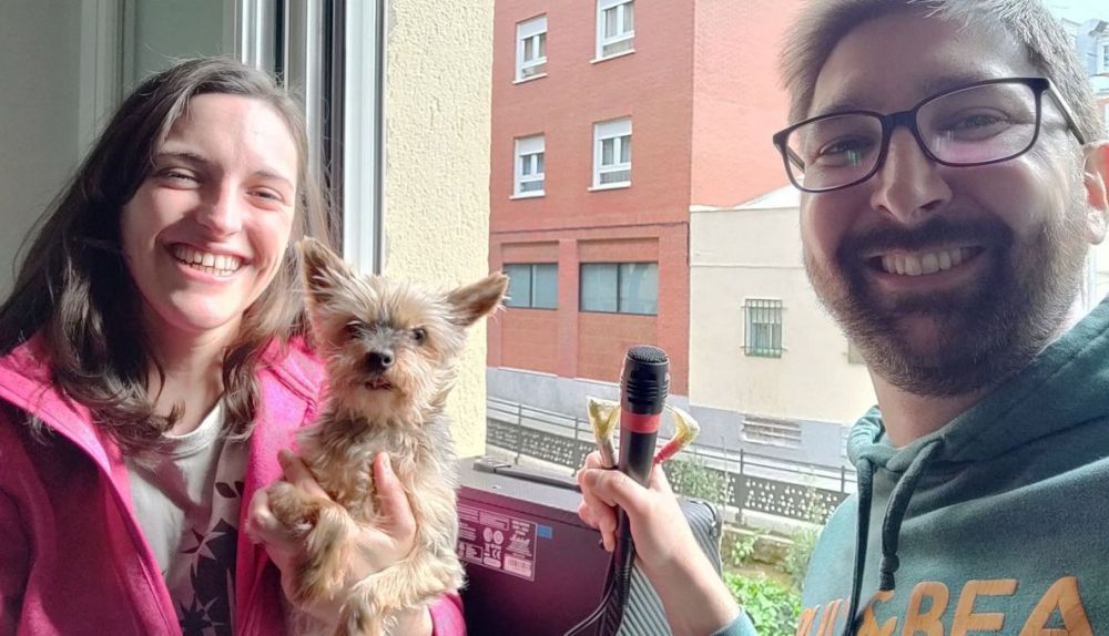 Cada tarde, con alguna ayuda de su pareja, la madrileña Marina López, ha vencido cualquier reparo y un día, aprovechando que acababa el aplauso sanitario de las ocho de la tarde, hizo un llamamiento a sus vecinos. Aprovechó el amplificador de su guitarra eléctrica, lo enganchó a su móvil, y puso canciones de karaoke para animarse con sus propias adaptaciones de Raphael, Camilo Sesto o Nino Bravo a ponerle letra a los confinamientos.