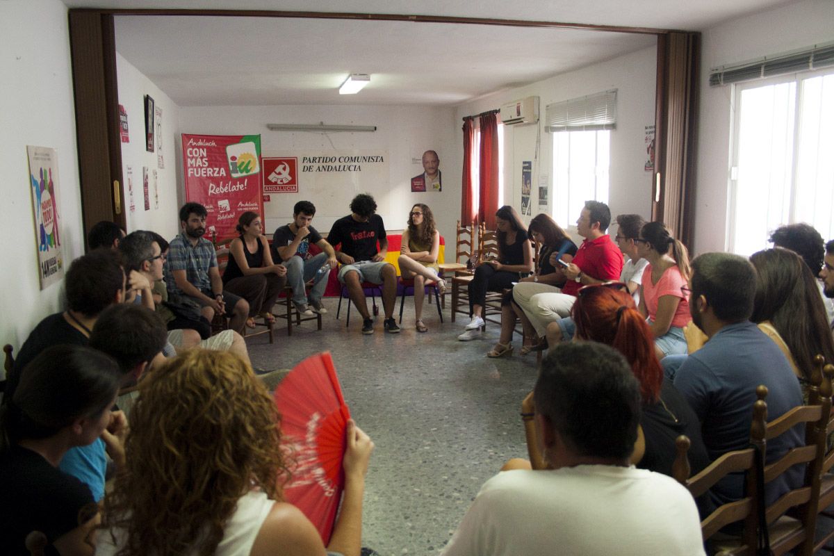 Tanto la Unión de Juventudes Comunistas como Izquierda Unida se unen para celebrar el triunfo del 'no' en el referéndum griego ante la troika. La mesa redonda estuvo presidida por la concejala del Ayuntamiento, Ana Fernández, y el reponsable de formación del PCA de Cádiz, Antonio Buitrago.