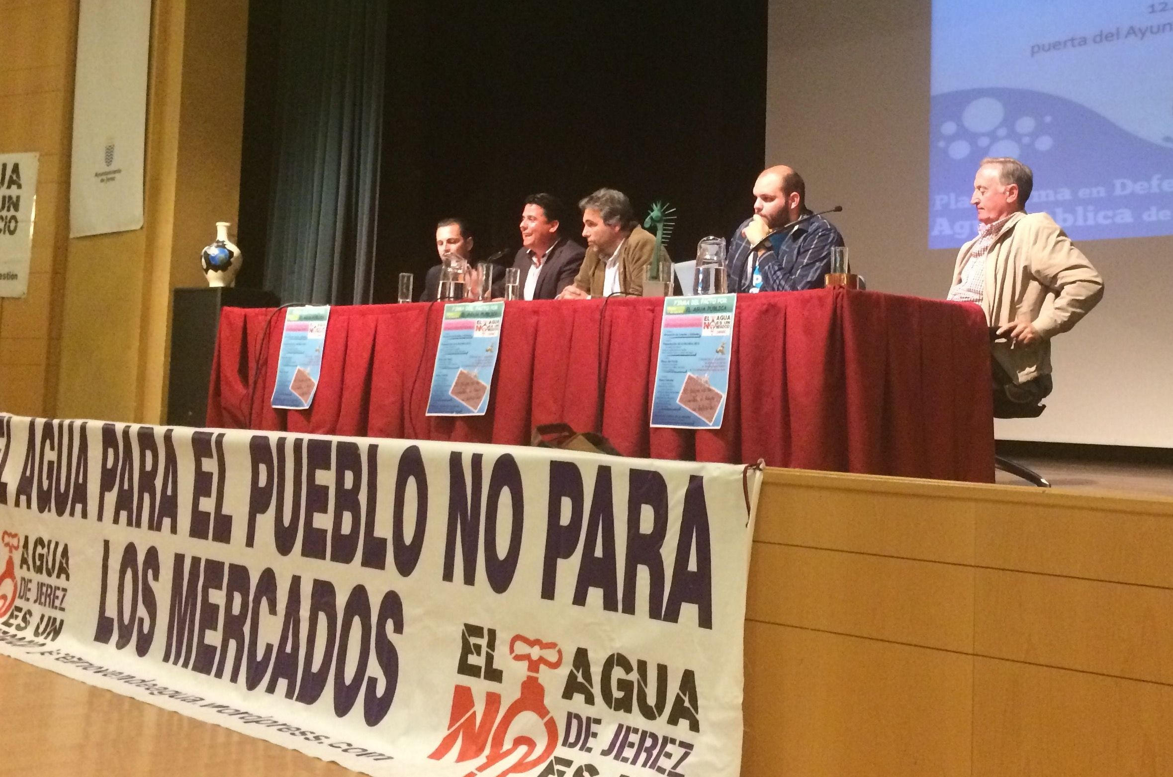 “Es desalentador”, dijo Babiano al contemplar el auditorio medio vacío. “En Jerez los gobernantes han saqueado sus recursos, ¿qué tiene que pasar para que las tornas cambien?”, se preguntó. También criticó que con el dinero de la privatización del agua se hayan restaurado iglesias, se vaya a hacer un géiser (en Torrox) o se patrocine a un equipo de fútbol. Y terminó con una reflexión: “¿Qué queremos ser: clientes cautivos o ciudadanos con futuro y responsabilidades?” Francisco Oliva expuso la situación por la que pasan en la vecina localidad de Sanlúcar, donde el Ayuntamiento privatizó el agua en agosto de 2010. Para él, “la clave es la formación de la ciudadanía”, que es quien tiene que “impulsar el cambio” hacia la municipalización del servicio.