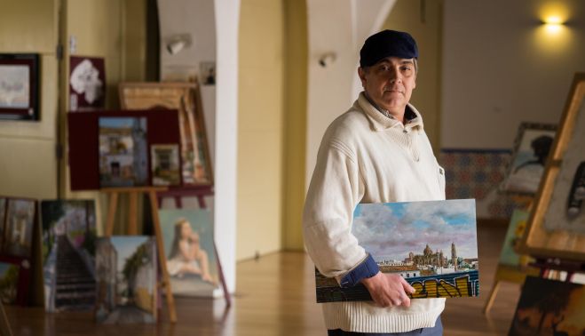 Los pinceles de Francisco José Retamero han ido reflejando a lo largo de cuatro décadas la involución de intramuros. El artista señala que la ruina vende, sobre todo entre sus clientes extranjeros.