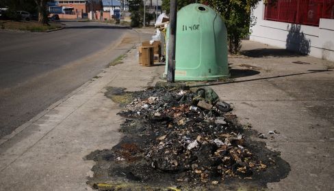 “Está mucho peor que antes”, señala sin dudar Auxiliadora, que destaca que cada vez que llueve se le forma un charco justo en la puerta de la nave de su empresa, algo que no le pasaba hace unos años. “Estamos peor que antes”, señala. “Llevamos dos años padeciendo esto”, insiste, y se queja de que en la avenida Sudáfrica, donde trabaja, “ahora la acera es súper ancha y la vía de circulación muy estrecha”, lo que dificulta el paso de camiones. De hecho, la obra inconclusa ha provocado que más de un bordillo ‘luzca’ con restos de neumático y aceite derramado, fruto de los accidentes que provocan.