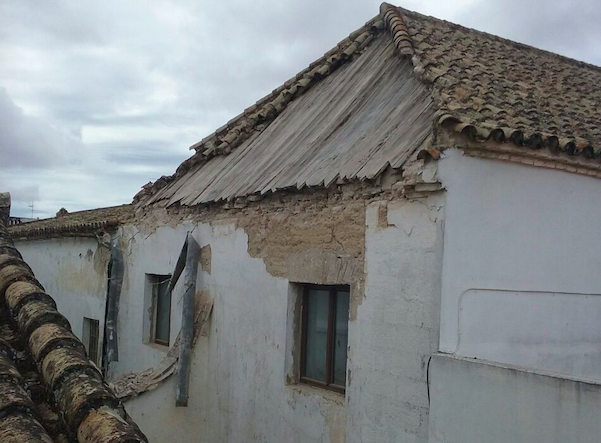 Una vez más se demuestra el mal estado que presentan algunos inmuebles del centro de Jerez. Ha sido caer el primer chaparrón en meses y venirse abajo parte del techo y cornisa de una clase de la Escuela de Arte que da a la calle Ídolos. El problema, sin embargo, no es nuevo. Ya desde la pasada Semana Santa se cayeron algunos cascotes en este mismo tramo, si bien por entonces la mejor solución que vio el Ayuntamiento fue alertar de la situación con un cartel desde el acceso a la calle por Porvera.