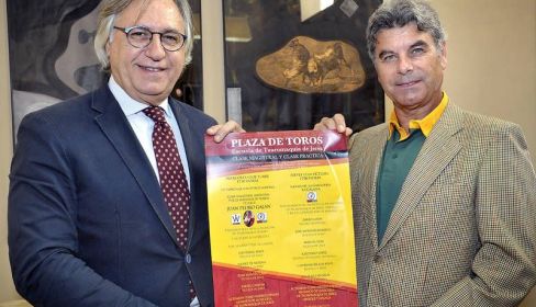 El teniente de alcaldesa de Urbanismo, Dinamización Cultural, Patrimonio y Seguridad, Francisco Camas, acompañado del director de la Escuela Municipal de Tauromaquia de Jerez, Antonio Lozano, ha presentado el cartel de la clase magistral de toreo organizada con motivo de la Semana de las Personas Mayores, que se tuvo que aplazar el pasado 12 de octubre por razones meteorológicas y finalmente, se celebra este sábado a las 17 horas en la plaza de toros de Chapín.