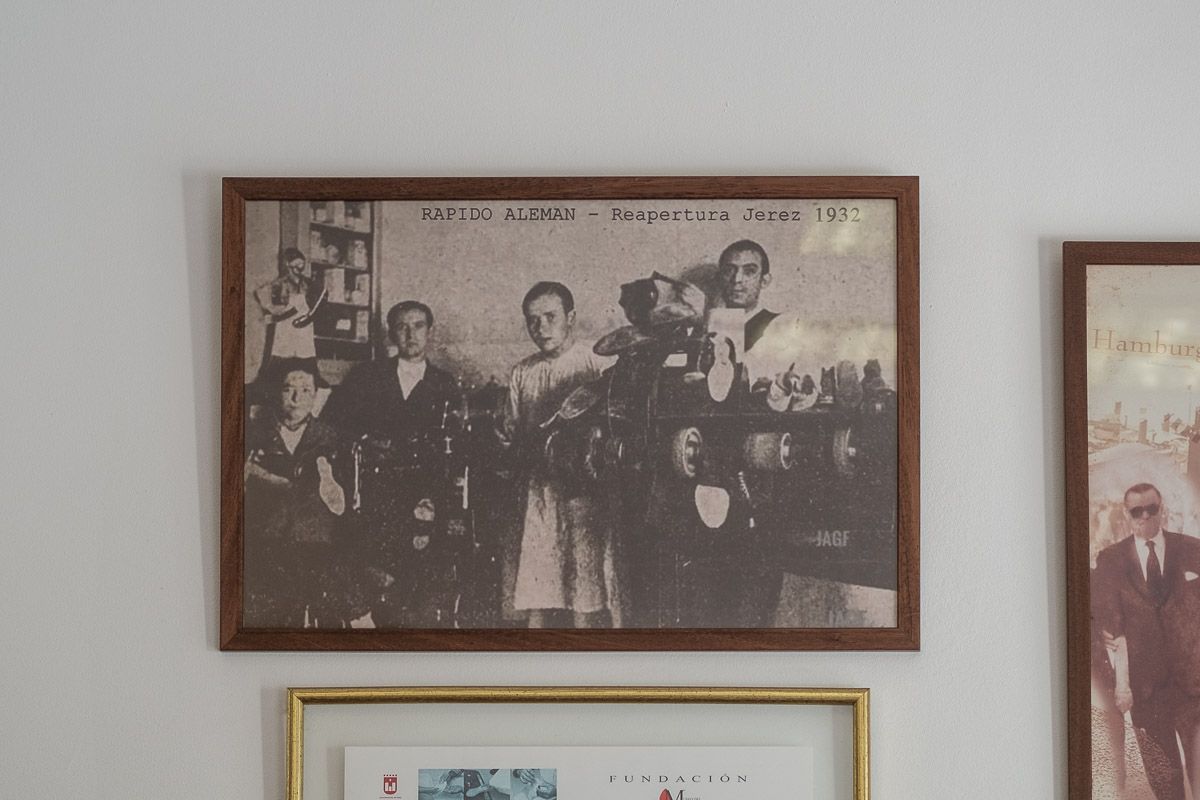 La familia Almueldo llegó de Sevilla a Jerez en años convulsos, en el surgimiento de la Segunda República. Lo fundó el bisabuelo del Samuel Almuedo, actual propietario y único trabajador de El Rápido Alemán, un clásico del remiendo de zapatos en Jerez, especializados en la resolución del trabajo de "hoy para mañana". Hace una década se jubiló definitivamente del negocio su padre, Antonio Almuedo, nieto del fundador. Hace tres, su madre, toda la vida en el mostrador, Mari Carmen García. Habla Antonio: "Mi padre y mi abuelo conocieron a un alemán en Sevilla que les quería vender una máquina para arreglar zapatos. Mi abuelo dijo que él no iba a saber usarla, pero el alemán les dijo que sí, que él enseñaba a él y a sus dos hijos. Fueron a Hamburgo a por ellas porque en España entonces no se fabricaban estas máquinas".