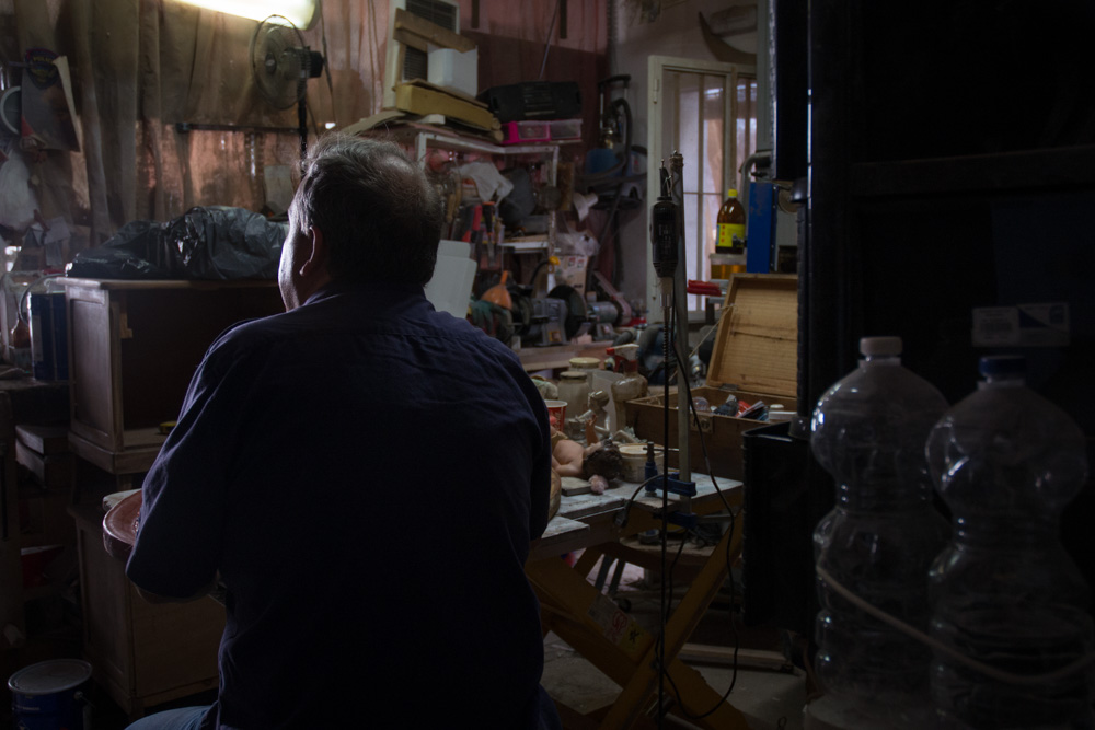 En 2009 abrió su taller de Clavel. “Este es un barrio de artistas. Aquí hay doradores, plateros, imagineros…”, explica Tito sentado en su mesa de trabajo, donde figuran un niño Jesús al que ha tenido que hacerle un nuevo dedo que se le había roto, una figura de Lladró con un brazo amputado y un antiguo marco de madera, entendemos que de un espejo, al que está aplicándole pan de oro, que luego tendrá que envejecer. De todos estos trabajos, el que más sencillo parece, el de la figurita de Lladró, es sin embargo el más farragoso. “La madera, al ser porosa, permite actuar mejor sobre ella. La figura no lo es, así que no quedará tan bien. A veces más que restaurar, no queda más remedio que disimular”, explica, aunque eso no quiere decir que el trabajo sea malo. De hecho, Tito no concibe entregar algo a medias o que no quede en condiciones. “No hay mayor satisfacción que te alaben el trabajo realizado”.
