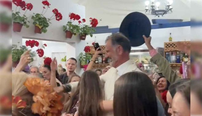 En la caseta en la que se encontraba el protagonista involuntario de este momento en la Feria han puesto incluso el himno de España mientras se escuchaba de fondo que "se ha bajado directamente del Juan Sebastián Elcano". Un grupo de personas rodeaba al suplente del monarca para entonar el himno español. "Literalmente, el rey de Jerez", ha destacado Ana Sáez, que ha compartido el vídeo en TikTok.