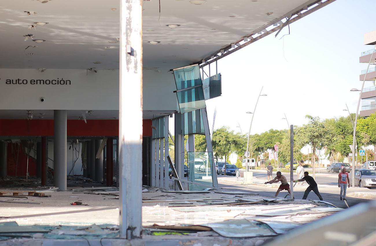 El concesionario, que lleva meses siendo desvalijado a diario y ahora ha sufrido un incendio, es propiedad del banco, que sigue sin hacerse cargo de los 40.000 euros en actuaciones de cerramiento y limpieza.