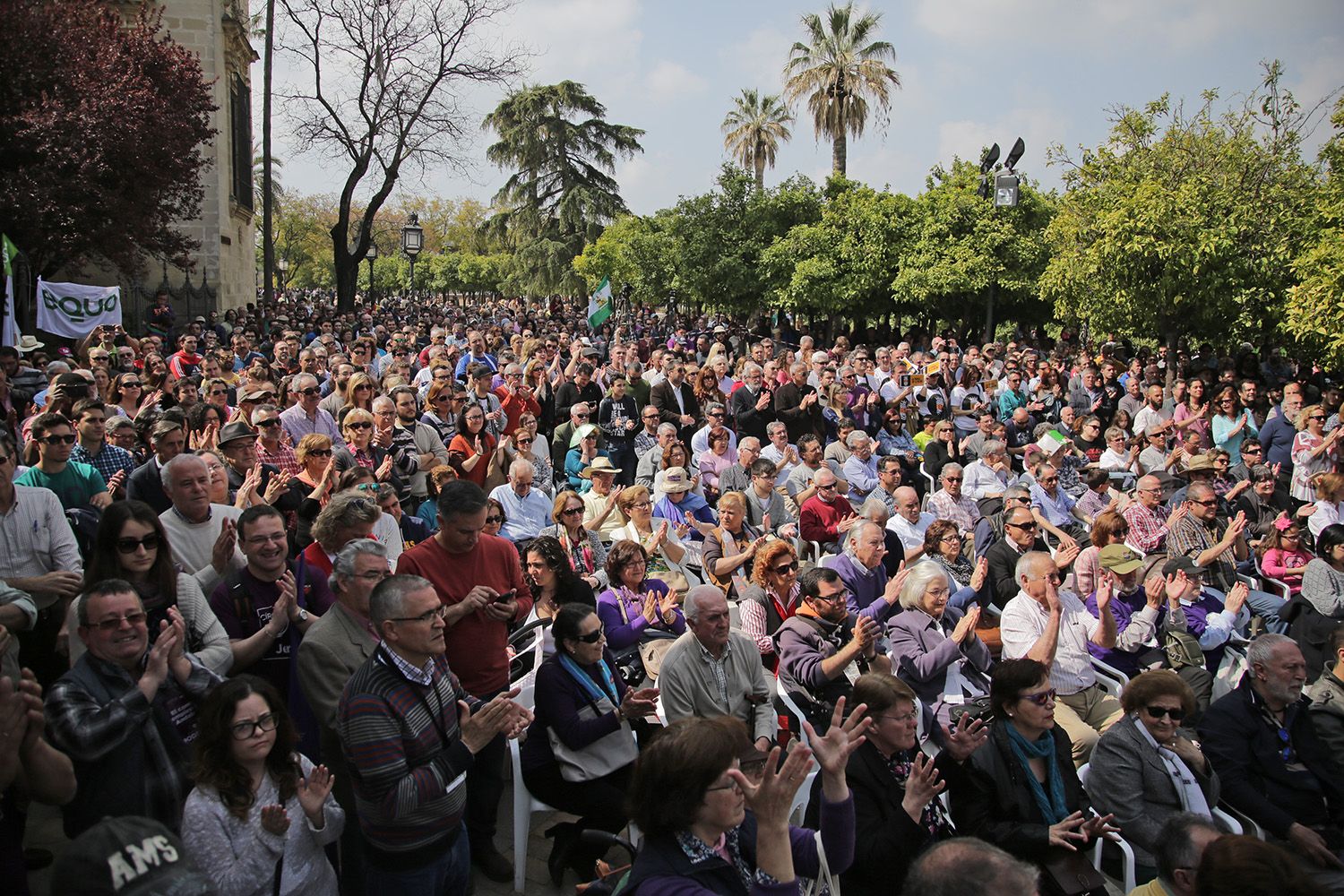 "Nos ha gobernado la mafia", dicen tanto Miguel Urbán como José Ignacio Sánchez, y el mensaje cala entre el público, que asiente con la cabeza y murmura. Urbán es el más impulsivo. Eleva el tono más que ninguno y hace constantes referencias a tramas de corrupción y a políticos que tienen dinero en Suiza o en Andorra. "Su única patria es el dinero", dice. Mientras, entre los asistentes, miembros del Círculo de Jerez reparten folletos sobre el acto que la formación tendrá en Dos Hermanas el próximo viernes para cerrar la campaña, al que animan a asistir a los presentes. Termina el mitin y suena el himno de Andalucía. Suben los intervinientes al escenario para corearlo, puño cerrado en alto. Teresa porta la bandera de la comunidad y José Ignacio una camiseta de la plataforma del ERE. Y para acompañar la gente grita: "¡Presidenta, presidenta!" En los mítines de PP, PSOE e IU también aseguran que sus candidatos ocuparán San Telmo. Serán las urnas las que hablen el próximo domingo.