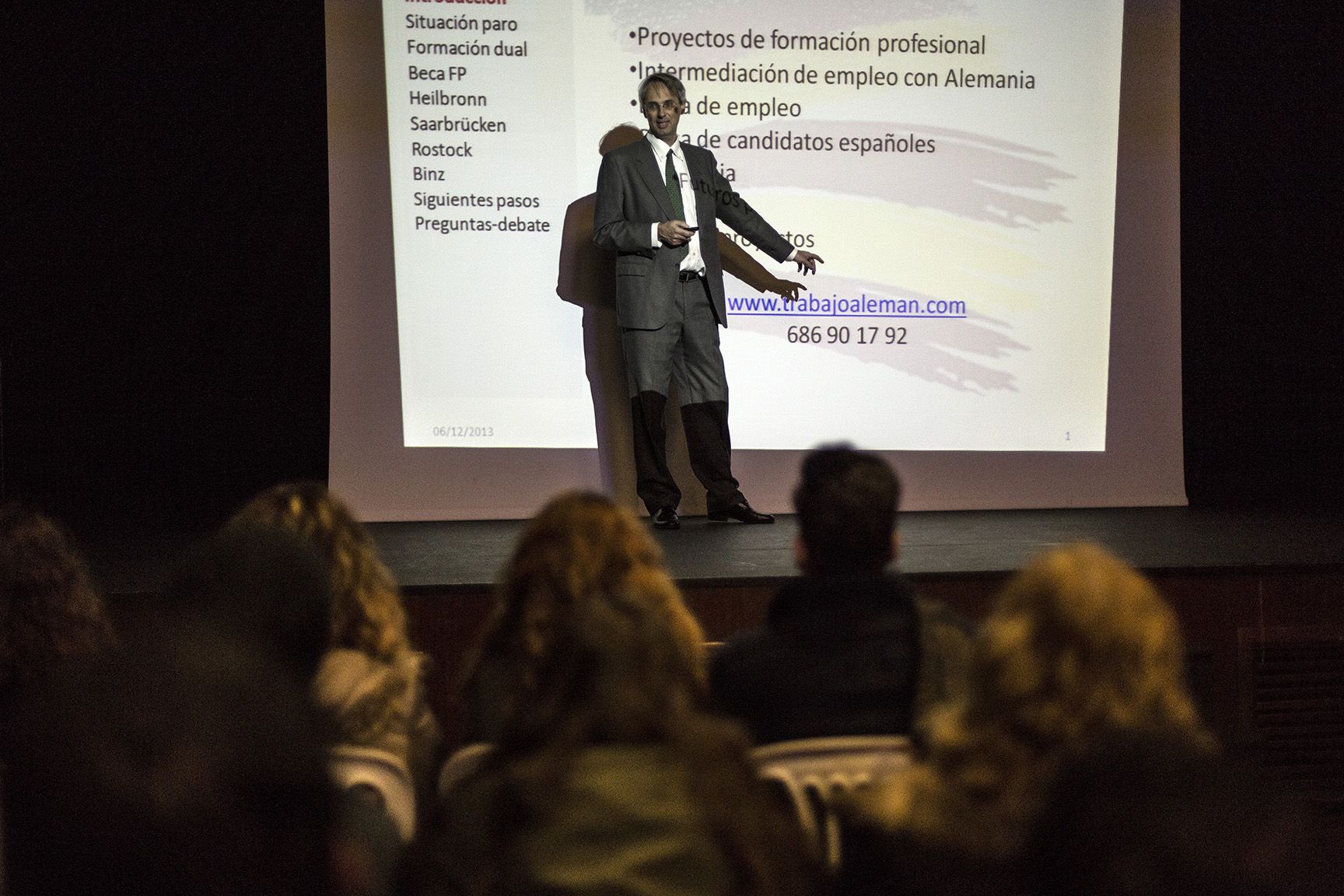 The job of my life consiste en aprender un oficio en Alemania. Antes deben realizar un curso intensivo y gratuito de alemán en Jerez cuya duración ronda los cuatro meses con el fin de obtener el B1. Reciben 300 euros para los gastos del viaje y durante las prácticas, 818 euros mensuales. "El objetivo es que ellos puedan ver si les gusta la formación alemana y si todo marcha bien, posteriormente comienzan la formación profesional mientras continúan con las clases de alemán y les ayudan a encontrar vivienda”, explica Markus Maier, de la empresa Avanza Ya, encargado de ofrecer la charla. Maier subraya que son becas de formación y solo una vez finalizada la misma pueden optar a un empleo en el país y cobrar como personal cualificado. Este programa aporta un poco de luz a estos jerezanos que después de esos tres años podrían aspirar a ser contratados en este Alemania donde el salario mínimo es de 8,50 la hora, unos 1.473 euros al mes... El trabajo de sus vidas.
