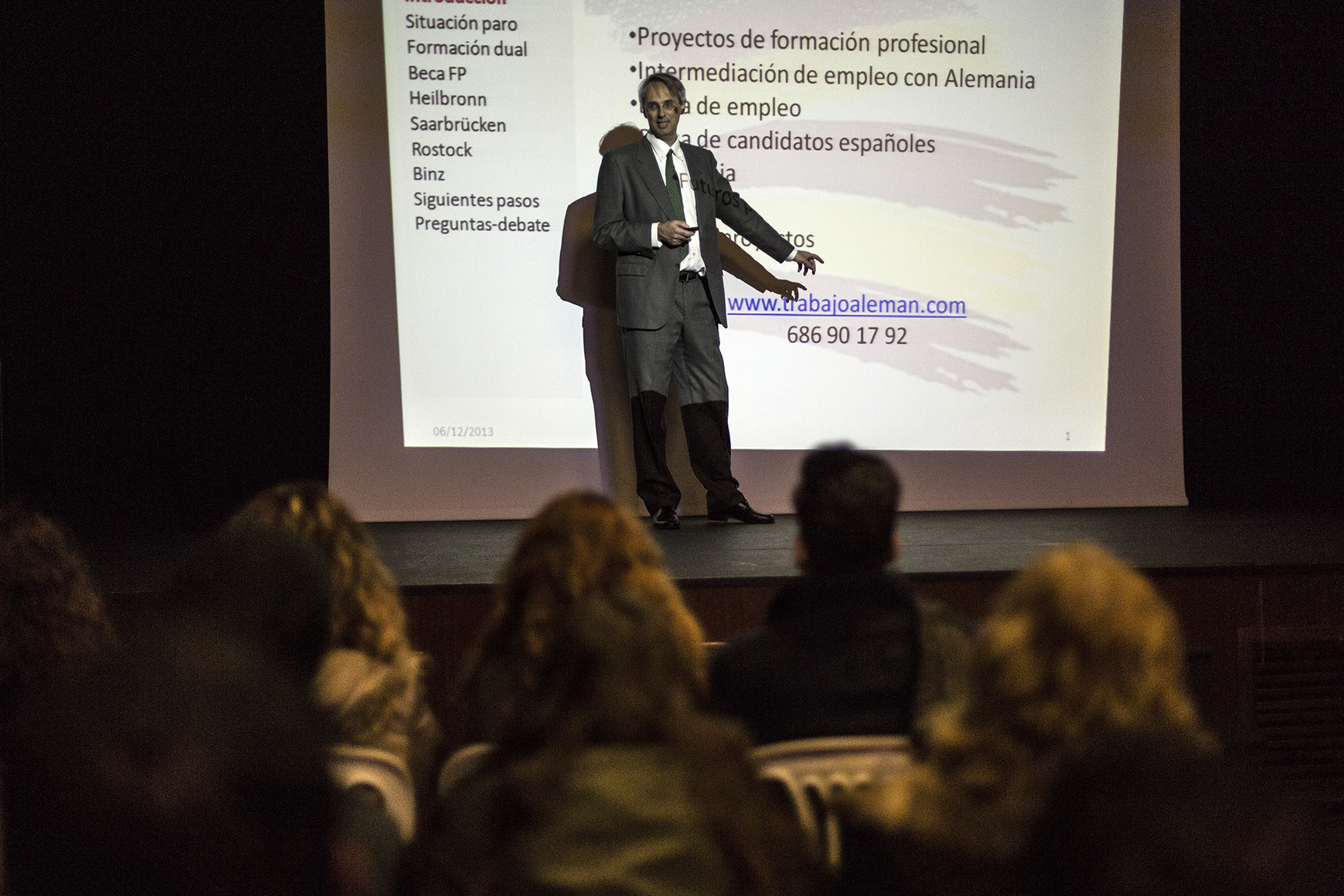La madre de Tamara les acompaña a la charla informativa para los jóvenes interesados en este programa. Admite que en Jerez no tienen posibilidades y que si encuentran trabajo, éste será precario, como el de su otra hija. Sin embargo, si por ella fuera, no los dejaría marchar al país germano “mientras pueda darles algo, un plato de comida y comprarle ropa”. “En Alemania –añade– también hay trabajo precario y aquí tienes la ventaja de que acabas y vuelves a casa, con tu familia”.