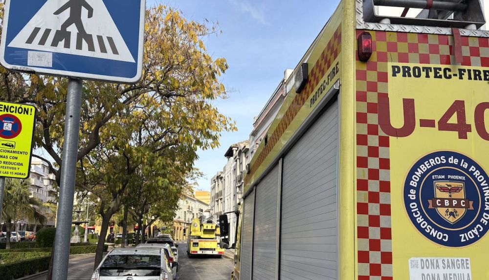 Efectivos del Consorcio de Bomberos de la Provincia de Cádiz (CBPC) se encuentran en la tarde de este jueves actuando en la céntrica plaza Aladro de Jerez. La intervención ha obligado a cortar la circulación en uno de los extremos de la plaza para facilitar el trabajo de los equipos desplazados hasta la zona.