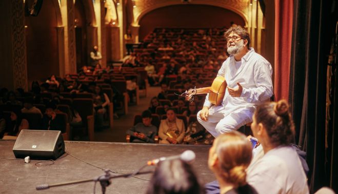 Y como hecho singular, de entre los muchos centros docentes que pasaron por alguno de los dos ensayos abiertos que realizaba Así Canta Jerez en Navidad en la Sala Compañía para los escolares, desde San Juan del Puerto — a 187 kilómetros de distancia—, después de algo más de dos horas de autobús llegaban al antiguo convento jerezano los alumnos del Instituto de Enseñanza Secundaria Diego Rodríguez Estrada que este año decidían escoger la asignatura de Cultura del Flamenco, dentro de las optativas.