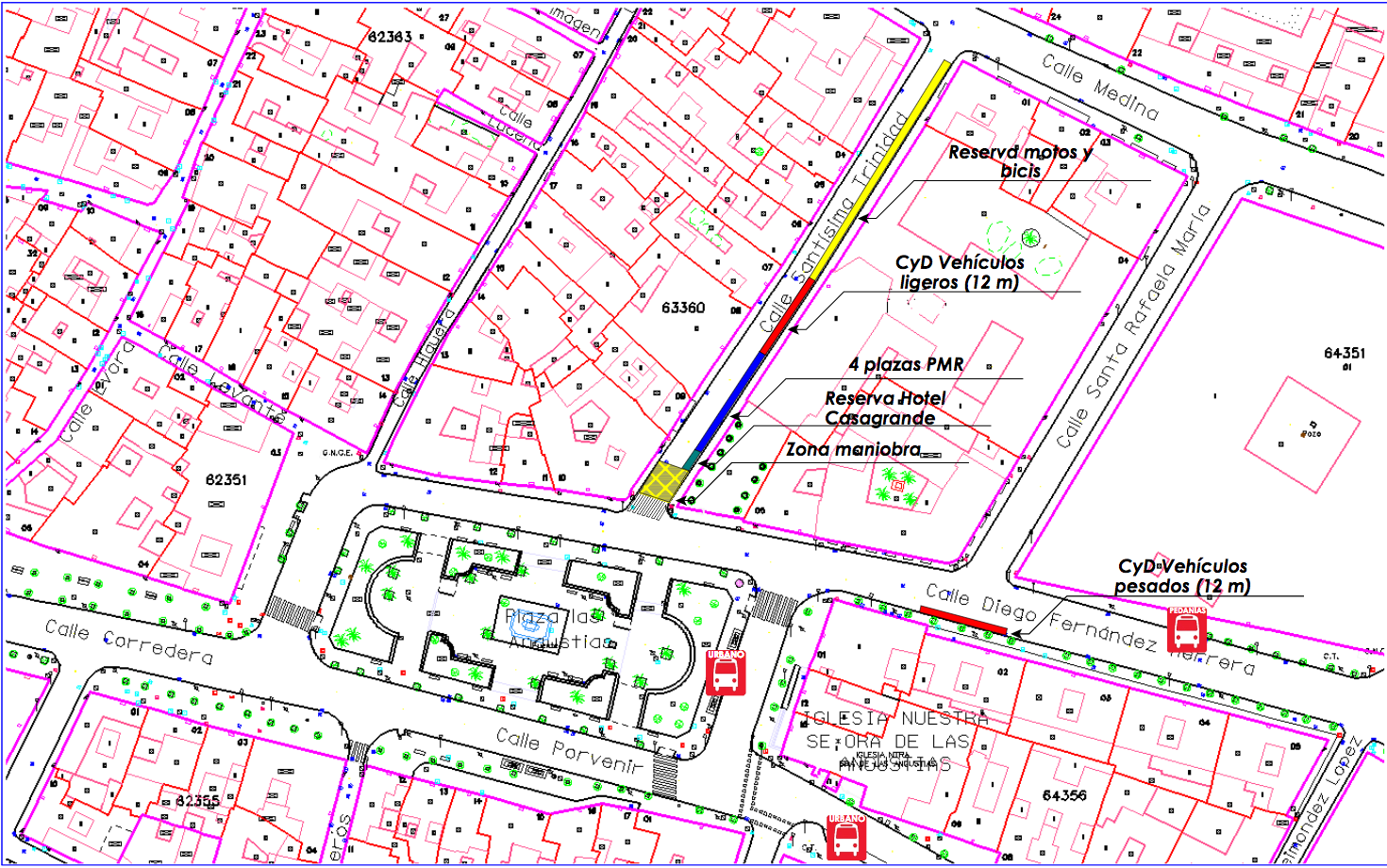 Asimismo, tras la ejecución de estas obras, el tramo de Corredera pasará a tener doble sentido de circulación para facilitar el tránsito de vehículos procedentes de Diego Fernández Herrera; además, la parada de autobuses de Corredera se trasladará al inicio de la calle Porvenir, y la de Diego Fernández Herrera pasará a formar parte de la existente frente a la fachada de la iglesia. Además, y de forma paralela, se procederá a la renovación de las redes de abastecimiento y saneamiento de los tramos que se van a peatonaliza.