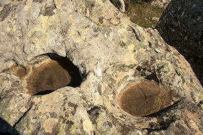 Una vez en la planicie que corona la sierra, podremos acercarnos hasta los dos mogotes rocosos que la presiden. Si trepamos (fácilmente) al primero de ellos podremos ver entre los bloques de arenisca cubiertos por líquenes, una tumba antropomorfa excavada en la roca, conocida como la Pilita de la Reina, quizás la más popular y conocida de todas. Con este mismo nombre se designa también en muchas ocasiones a esta cumbre ya que, según una tan extendida como infundada tradición popular, “se bañó en ella la reina Isabel la Católica”. Sepulturas similares aparecen en otros puntos de las sierras del Campo de Gibraltar y muchos investigadores las consideran “tardorromanas”, visigóticas o del periodo alto-medieval. En el segundo montículo puede verse el vértice geodésico del Aljibe.