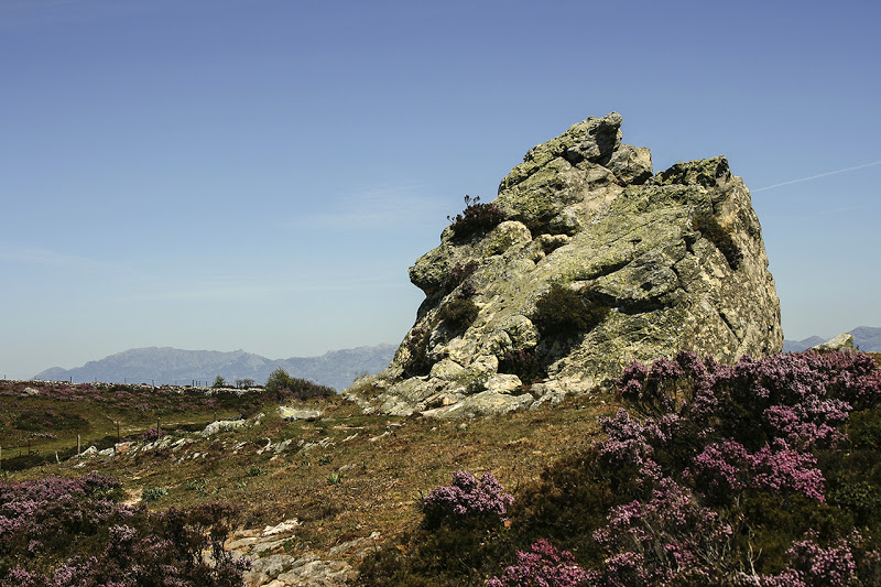 De la misma manera, estos autores llaman la atención sobre el matorral achaparrado que cubre las herrizas de estas crestas y que describen como “asociación del Quercus humilis”, de las que podemos hoy observar, como hace casi cien años atrás, las especies más significativas que lo integran. Así, junto a la robledilla o roulilla, de porte achaparrado y rastrero, veremos las lustrosas matas de jara estepa, de flores blancas, o los omnipresentes brezos, que desde finales del invierno y durante la primavera, dan a estas cumbres con sus flores un hermoso tono blanco y rosado.