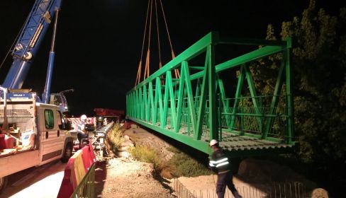 La Consejería de Fomento, Articulación del Territorio y Vivienda ha procedido en la noche de este jueves a dejar planteada y casi ultimada la colocación la pasarela metálica para salvar el arroyo de la Guareña.