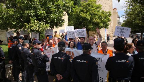 Los pensionistas, escoltados por la Policía Nacional, comenzaron sus protestas en la acera de enfrente del convento de San Agustín, a espaldas del Alcázar, para luego desplazarse a la esquina con la calle Conde de Bayona, donde algunos manifestantes critican que fueron empujados e identificados por los agentes. Para cuando concluyó el acto, no quedaba rastro de la Marea de Pensionistas en la puerta, pero sí de una pareja que estaba paseando a sus perros cuando se encontró con el evento organizado por el PP.