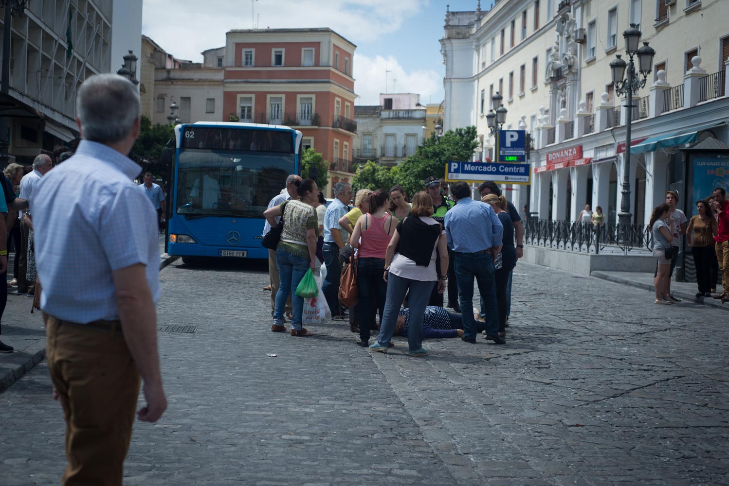 “El día menos pensado acabamos en el garaje”, señala medio en broma, medio en serio, José Fernández Morales, refiriéndose al parking de Doña Blanca minutos después de presenciar la caída. Está en una de las paradas del autobús de Esteve, repleta de personas que no paran de comentar el suceso. A pesar de cómo está el adoquinado, una anciana, que se ayuda de una muleta para caminar, decide cruzar la calle. “A ver si la conozco”. “Señora, tenga usted cuidado, que mire cómo está esto”, le recomienda una chica. Aún así, la anciana se acerca y mete la cabeza entre las personas que atienden a la mujer, todavía tumbada en el suelo. “No la conozco”, comenta mientras vuelve a la acera a paso lento. “Es una vergüenza que una ciudad tan turística y tan importante como Jerez tenga las calles caídas y abandonadas”, lamenta María José Caro, otra de las personas que espera el autobús.