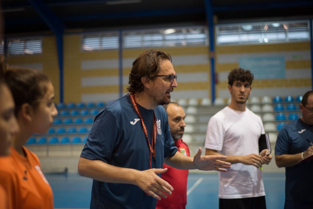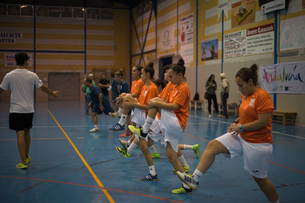 Mientras el sol se esconde, las luces del interior del pabellón de la ELA se encienden. Es de noche, pero en agosto el calor no cesa. Las puertas están abiertas de par en par, y en medio de estas, aprovechando la leve brisa, algunos vecinos del pueblo se sientan a contemplar el primer entrenamiento. Las jugadoras del CD Guadalcacín Fútbol Sala femenino forman un círculo en mitad de la pista. Todavía no ha comenzado el entrenamiento. Es el turno de la charla de bienvenida y el discurso motivador que renueve las pilas de veteranas y nuevos fichajes. Del equipo técnico, compuesto casi en su totalidad por hombres, habla una voz que pide compromiso a las chicas. A lo que el entrenador jerezano, Andrés Sánchez, replica: "Si algo tienen mis jugadoras es compromiso, eso ya lo tienen". Asegura que no hace falta exigirles una responsabilidad al equipo, pero que "este año se aprende la estrategia, sí o sí".
