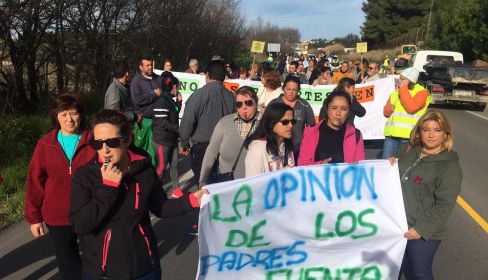 La AMPA del CEIP Lomopardo ha salido a la carretera que une esta barriada rural con Los Albarizones, acompañada del colectivo de padres del colegio Nuestra Señora de La Paz y los CEIP Gibalbín y La Ina, para tratar de impedir que se oficialice la nueva planificación educativa, programa que se pondrá en rigor a principio de marzo si el delegado territorial de Educación en Cádiz, Juan Luis Belizón, no da marcha atrás. "Ha contestado que podemos hacer lo que queramos, pero que esto va a salir adelante", ha declarado frustrada Susana Bustos, miembro de la AMPA del CEIP Lomopardo. La marcha, iniciada desde la barriada rural de Los Albarizones, ha sido tan sonora que incluso se ha podido sentir la "lucha" desde la avenida Juan Carlos I. "¡De nuestros colegios no nos moverán!", han vuelto a cantar hasta llegar al CEIP Lomopardo pasado el mediodía.