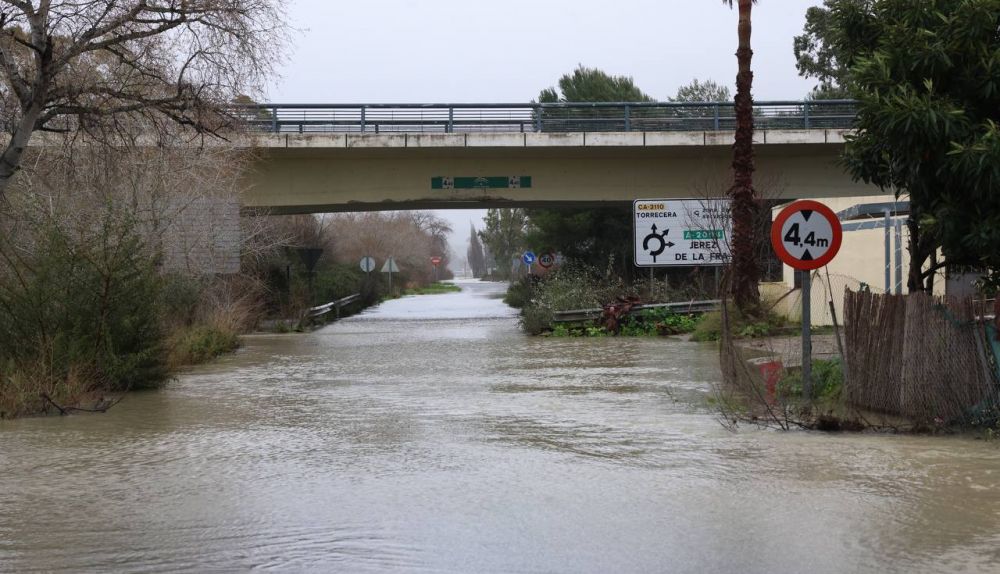 La CA-3104 (Guadalcacín–Las Mesas) está cerrada al tráfico entre los kilómetros 7 y 7,75, en el final de la vía y su intersección con la CA-4102, por el desbordamiento del arroyo Salado. En el caso de la CA-3110 (La Ina I), el corte se extiende desde el kilómetro 0, en la intersección con la A-381 a la altura del punto kilométrico 1 y la rotonda de enlace, hasta el kilómetro 4,6, en La Ina, como consecuencia del desbordamiento del río Guadalete a su paso por el kilómetro 4.