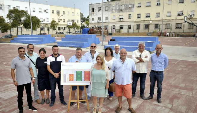 La alcaldesa de Jerez, Mamen Sánchez, junto al teniente de alcaldesa José Antonio Díaz y el delegado Jesús Alba, ha presentado a los representantes vecinales de la barrida de La Asunción el borrador del proyecto de remodelación de las pistas deportivas, "que ya tenemos diseñado aunque vamos a elegir, en colaboración con los vecinos los colores". La obra tiene un presupuesto de 130.000 euros, está en fase de licitación y el plazo de ejecución será de tres meses. "Podemos empezar el año 2023 con todas las pistas totalmente renovadas", ha explicado Mamen Sánchez.