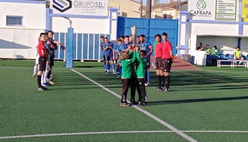 Los pequeños futbolistas recibieron el calor del público del municipal de Guadalcacín en la previa del choque ante el Puerto Real del último fin de semana. Los jugadores de ambos equipos hicieron el pasillo reservado a los equipos ganadores y los tres jóvenes béticos pasaron con el trofeo conquistado.