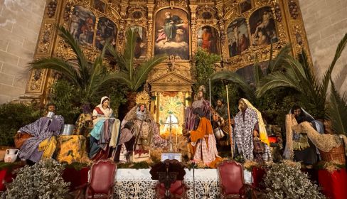 Uno de los nacimientos más destacados que se pueden visitar en Jerez durante estas fechas vuelve a ocupar un lugar privilegiado en la iglesia de San Marcos. Se trata del Belén a tamaño real que cada año instala la Hermandad de la Sagrada Cena, un conjunto que cubre por completo el presbiterio del histórico templo y que recrea un clásico portal de Belén con imágenes de gran realismo.