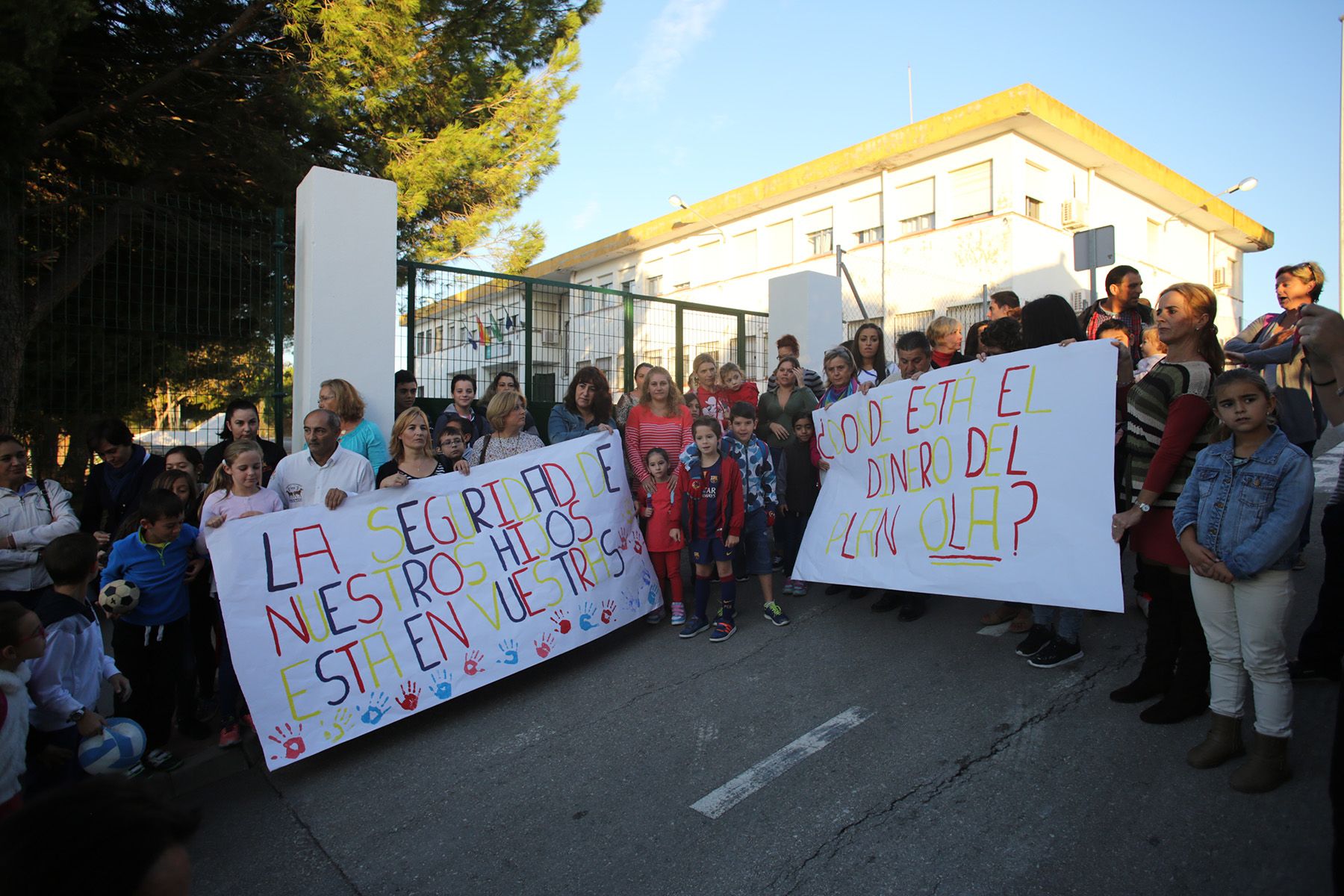 "La seguridad de nuestros hijos está en vuestras manos", pone en la pancarta que portan los padres y madres concentrados frente al centro. “Queremos estar tranquilos de que no le va a pasar nada a los niños”, dice Antonia Lechuga, presidenta de la AMPA.