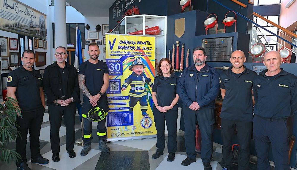 El delegado de Deportes, Tomás Sampalo, junto al secretario de la Agrupación de Bomberos de Jerez, Diego Romero Vázquez, ha presentado la V Carrera Infantil Bomberos de Jerez, que tendrá lugar el 30 de noviembre. Todo lo recaudado en esta edición se destinará a la compra de juguetes y regalos para los niños y niñas ingresados en el Hospital de Jerez durante el día de Navidad.