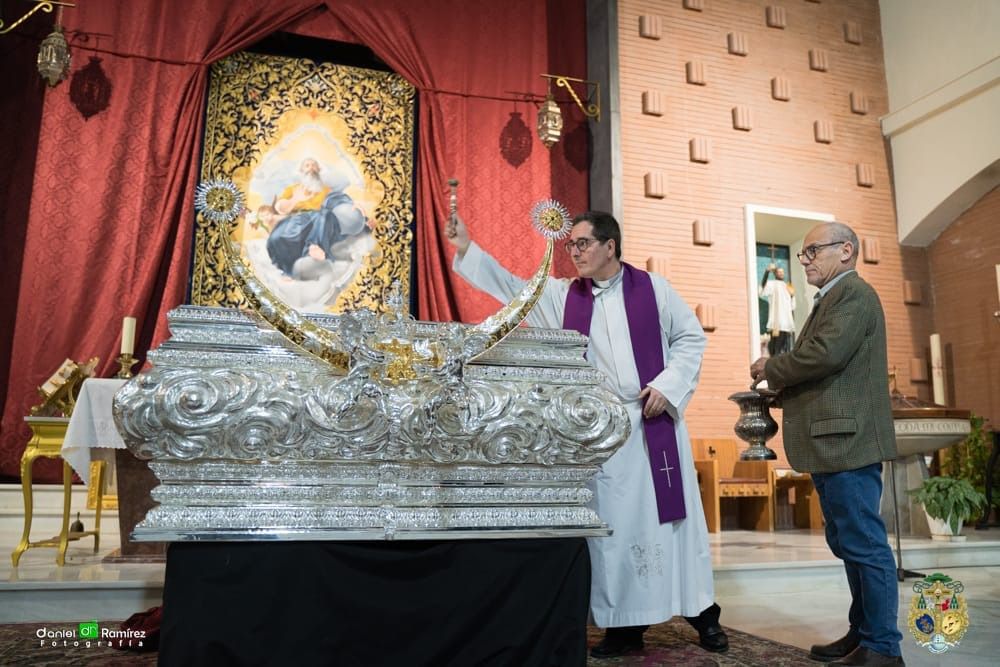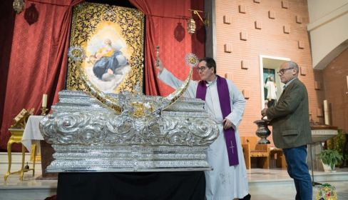 La Hermandad de la Exaltación ha dado a conocer dos nuevas e importantes piezas que vienen a seguir completando el nuevo paso de palio de La Concepción Coronada. La cita fue en la iglesia de las Viñas ante una gran expectación. Recordar que este proyecto arranca desde septiembre de 2019, fecha en la que los hermanos, en cabildo, lo aprobaron.