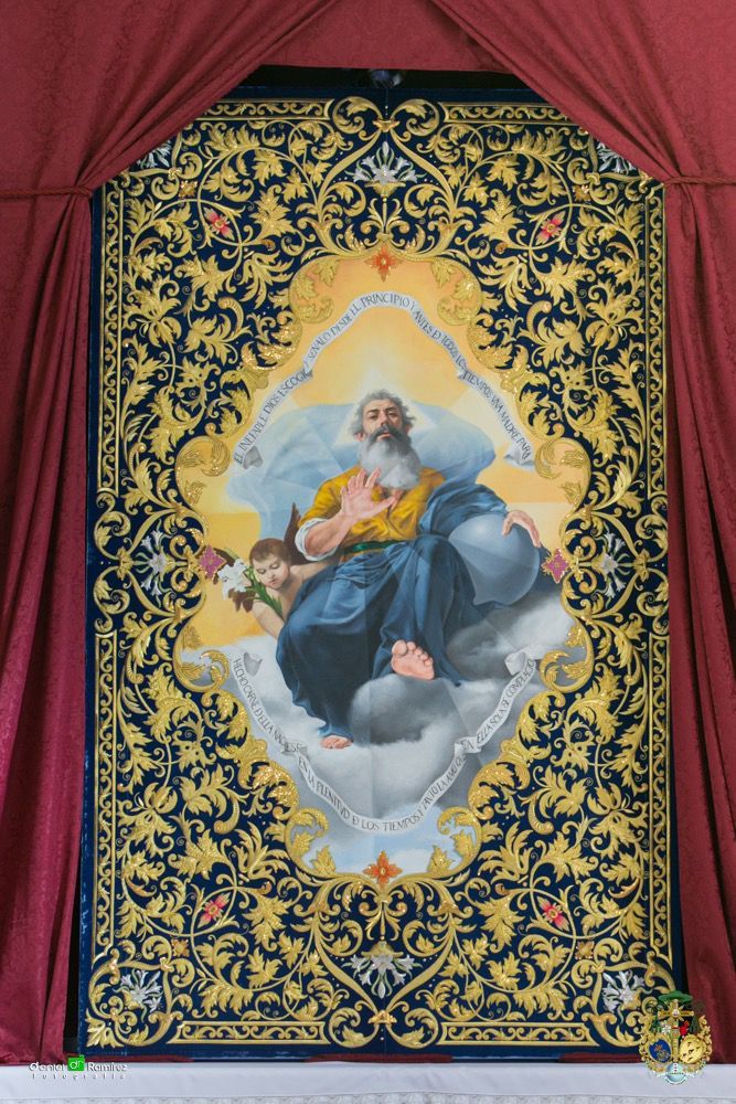 La pintura que protagoniza la Gloria, que se integra perfectamente con el techo de galio gracias a los bordados que la rodean, ha sido realizada por el artista canario Josué Hernandez, siguiendo las técnicas del realismo pictórico, en la que se representa a Dios Padre bendiciendo desde el cielo con su mano la figura de María Santísima de la Concepción Coronada. La obra se hace llamativa por sus colores alegres, que compactan perfectamente con las tonalidades del oro del bordado y el terciopelo azul.