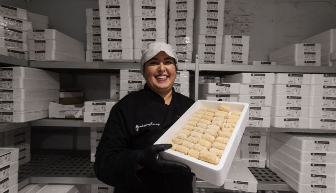 La estrella de su catálogo es un clásico reinventado: la croqueta. Desde sabores tradicionales como boletus o chicharrones hasta opciones más innovadoras como calabaza, parmesano y tagarninas, el surtido es prácticamente ilimitado y se adapta a los gustos del cliente, que suele ser bares, restaurantes, cáterings y hoteles. Rosario González es la gerente de esta empresa familiar, en la que sus padres también desempeñan un papel clave.
