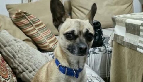 La fotografía que acompaña el aviso muestra a Canelo, un chihuahua de color marrón claro con un collar azul, sentado sobre un sofá entre cojines. Su expresión tranquila y sus grandes orejas llaman la atención en la imagen, que ya ha sido compartida decenas de veces por vecinos solidarios que se han unido a la búsqueda.