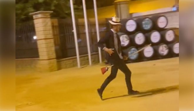 Para hacer la gracia o ganarse el título –sin homologar– del más achispado de la Feria, un joven cogió una escoba de alguna caseta y le quitó un sombrero a un hombre.