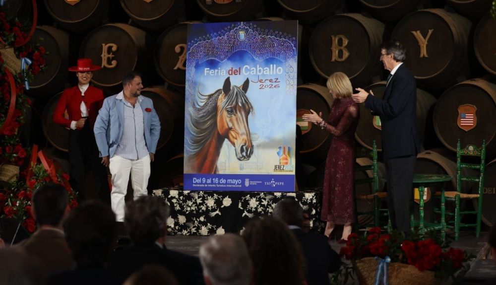 En el transcurso del acto celebrado en González Byass se ha descubierto el cartel de la Feria, óleo sobre lienzo, con un "fondo tratado con un degradado que va desde el color del albero, hasta el cielo azul negro de la noche, pasando por el cielo azul claro del día. En la parte de abajo se encuentra el templete Municipal, difuminado con el fondo, a la derecha el logotipo de Jerez capital española de la gastronomía 2026. Y por último del bajío del caballo sale en forma de humo la silueta de una gitana. Con esta obra el autor quiere transmitir, elegancia, color, luz, alegría y creatividad", explica Rodríguez.