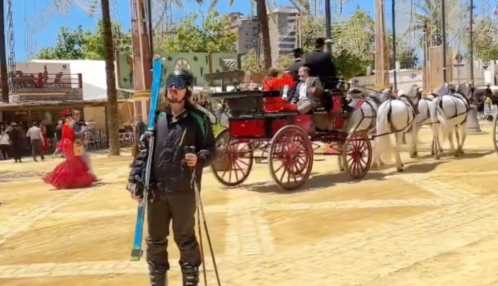 Lo que está claro es que el esquiador llamó la atención de los que a esa hora se encontraban paseando por el Real de la Feria.