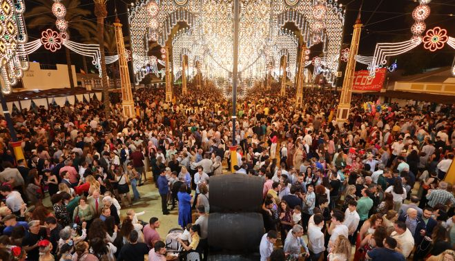 Móviles en mano y todas las miradas puestas en la iluminación ornamental que, un año más, da el pistoletazo de salida a la Feria del Caballo.