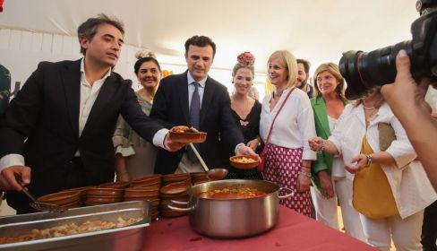 El termómetro marcaba más de 30 grados en el exterior —esto quiere decir que en el real del González Hontoria subía hasta al menos 35—, pero todo en La Popular era frescura. Hasta un plato tan poco típico para estas calores, la berza jerezana, maridaba bien en una caseta donde todo ha sido buen ambiente y sonrisas en este lunes de Feria del Caballo. Regresó la típica berza de Feria que el PP de Jerez comparte con la prensa —cada vez más menguada, por cierto— y ha vuelto a ejercer María José García-Pelayo de anfitriona.
