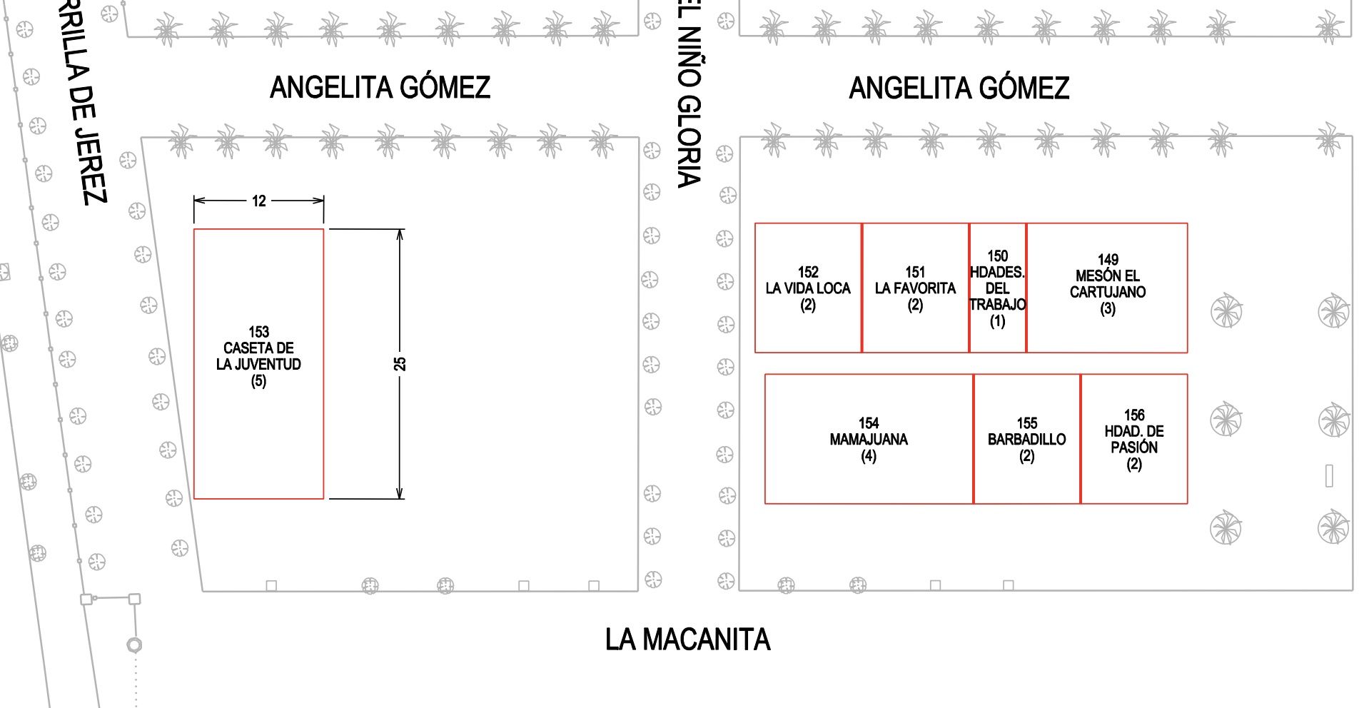 Los módulos que compondrán la enorme carpa, con una fachada de más de 25 metros, estarán situados entre las calles Angelita Gómez y El Niño Gloria del Real, en una parcela que año tras año venía quedando desocupada ante la bajada en el número de casetas de la última década. En esta zona del Real, que tradicionalmente estaba reservada a las casetas de movida juvenil, y donde han venido instándose incluso cámaras de seguridad, se ubicará la que pretende ser la solución del gobierno local para poner fin al botellón y a la dispersión de casetas discoteca que vienen poblando la Feria del Caballo.