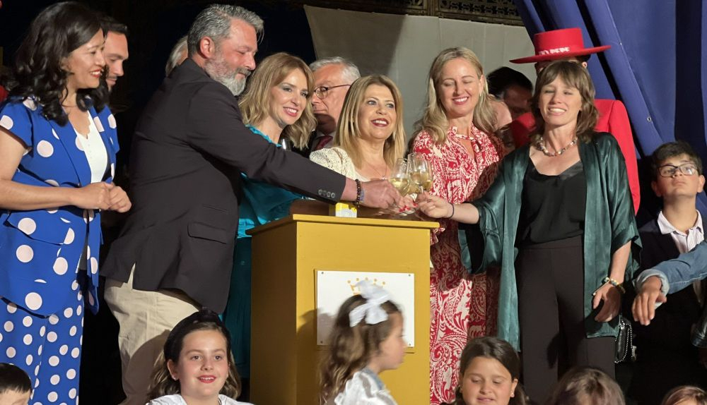 La Feria del Caballo ha dado el pistoletazo de salida con el estreno oficial de su alumbrado. Mamen Sánchez ha vuelto a pulsar el botón rojo que ponía fin a 1.085 días de sequía festiva.