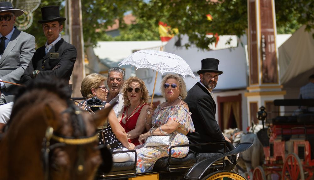 La media botella ha subido más que la gasolina, pero a pocos parece importar ante un jornada en la que el sudor derrite el glamour sin un hueco libre. Las casetas de moda, las que ofrecen flamenco y actuaciones en vivo, están atestadas desde primer hora de la tarde, justo cuando momentos después el escuadrón a caballo de la Policía comienza a despejar los paseos de caballistas.