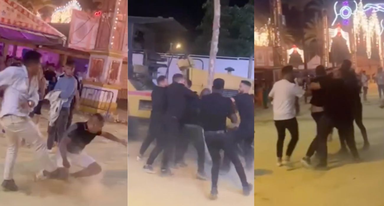 Tras el choque, una fila del alumbrado del recinto ferial se ha venido abajo. Operarios de la empresa encargada de las luces de la Feria de Jerez se han puesto rápidamente a solucionar el incidente.