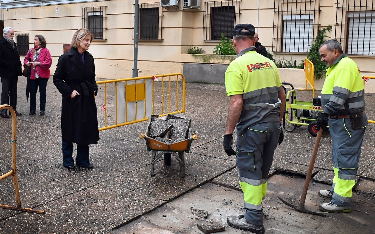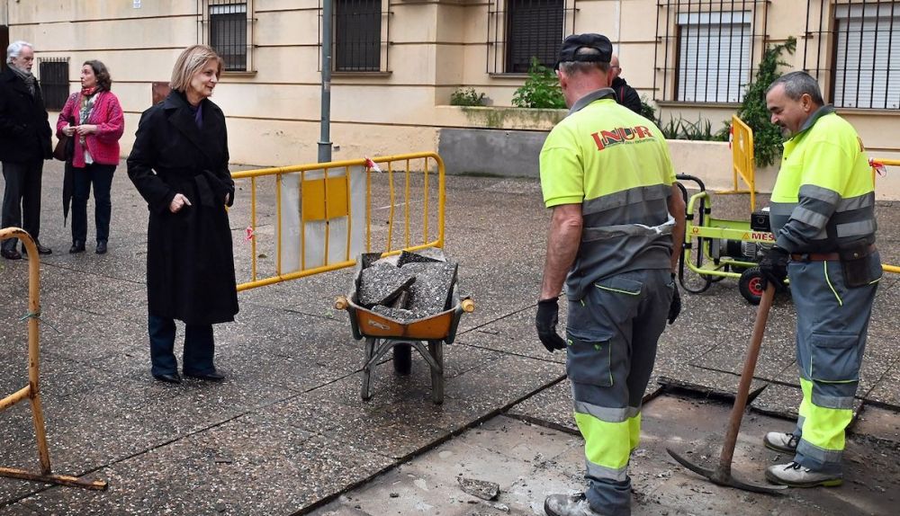 Durante su visita, la alcaldesa ha recordado que “los vecinos nos venían demandando una solución a estos hundimientos, que, en algunos puntos llegaba a ser peligrosos transitar por ellos. Estamos hablando de una plaza situada en una zona residencial, en la que hay muchísimos vecinos y en cuyo entorno se encuentra también el espacio cultural del Callejón de los Bolos”.