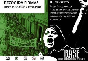 La Asamblea de Estudiantes convoca durante toda la jornada de hoy una campaña de recogida de firmas para pedir a la UCA y a la Junta que los cursos de B1 sean gratuitos o el pago fraccionado de la matrícula, entre otras reivindicaciones