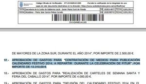 Lo que no dijo entonces es que en la junta de gobierno local de anteayer se iba a aprobar un nuevo gasto, mucho más cuantioso, para añadir al coste que supondrá para las arcas municipales la expedición jerezana. Concretamente, el punto 17 del orden del día aprobó los gastos para "contratación de medios para publicación calendario festivo 2014, a repartir durante la celebración de FITUR" por importe de 13.310,00 euros. Una cantidad 'extra' a la comedida cifra que aportó García-Pelayo para tratar de aparentar imagen ante la opinión pública de austeridad y contención del gasto.