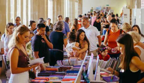 Es difícil andar por los pasillos de los Claustros sin frenarse a cada paso. Sin esquivar personas o carritos de bebé —porque está muy pensada para atraer al público infantil hacia la lectura— e incluso con simpáticos personajes de cuentos que saludan a todo con el que se cruza.