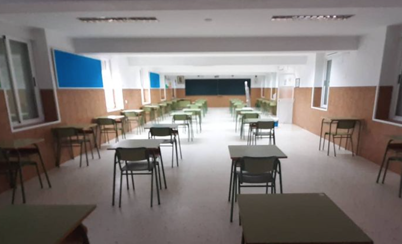 "Parece que nuestros chicos y chicas vuelven en mejores condiciones que en las que se fueron. Detrás, mucho trabajo y esfuerzos, pero vale la pena. Ahora, a seguir pidiendo la colaboración de todos para vencer al virus, porque si no guardamos las distancias personales, usamos adecuadamente las mascarillas y extremamos las medidas de higiene, de poco sirve las condiciones que podamos ofrecer. Todos contra el virus", escribe el colegio Marianistas de Jerez, con una imagen en la que se puede ver la enorme distancia que se guarda entre pupitres y la pizarra.