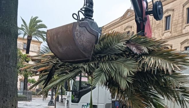 El Ayuntamiento de Jerez ha informado de que hay varias calles cortadas al tráfico este miércoles por temporal, debido a la caída ramas y árboles por los fuertes vientos que trae la borrasca Kristin.