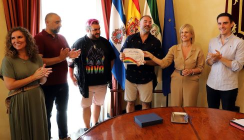 La alcaldesa de Jerez, María José García-Pelayo, junto a los tenientes de alcaldesa Jaime Espinar y Susana Sánchez Toro, ha recibido en el Ayuntamiento a Gabriel J. Martín, al que en este mes de junio le fuera concedido el Premio Arcoíris 2023 dentro de la programación del Orgullo LGTBIQAP+. El acto ha contado con la presencia de Salvador Mena y Eduardo Coronillas, representantes de Jerelesgay.